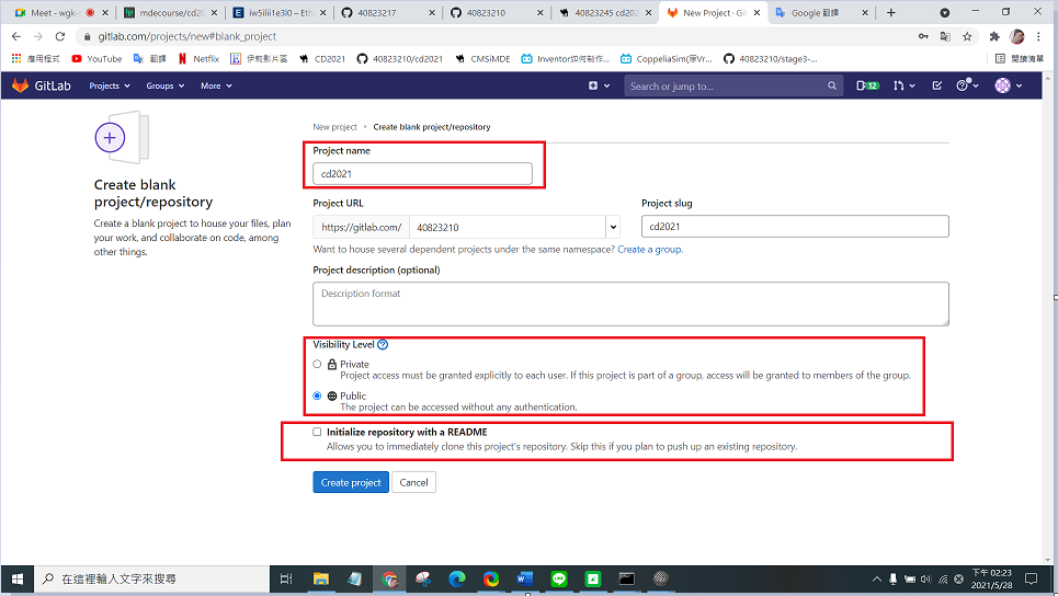 ◾完成後,gitlab同步github資料,但正常應該是綠勾(05/17以後需信用卡認證)